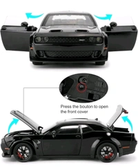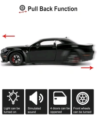 Take your love for cars to the next level with the 1:24 Scale Exclusive Alloy Metal Pull Back Die-cast Car Model. Designed for kids and collectors alike, this miniature replica of the iconic Dodge Challenger in bold red is a must-have. Combining stunning details with interactive features like sound and light, this die-cast car is the perfect gift for young automobile enthusiasts or a standout addition to your collection.