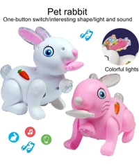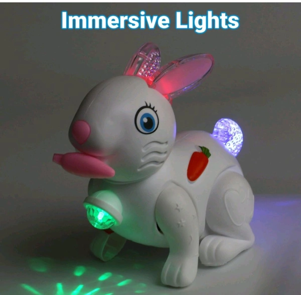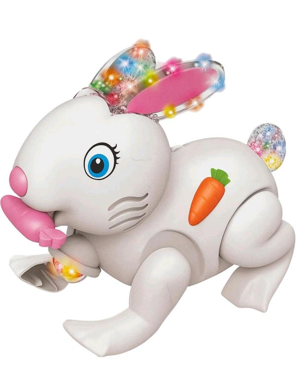 3D Flashing Lights, Music, 360-degree Dance Moves, Educational Toy, Battery Operated, Ages 3+ - Multicolor (Bud Jumping Rabbit - White)