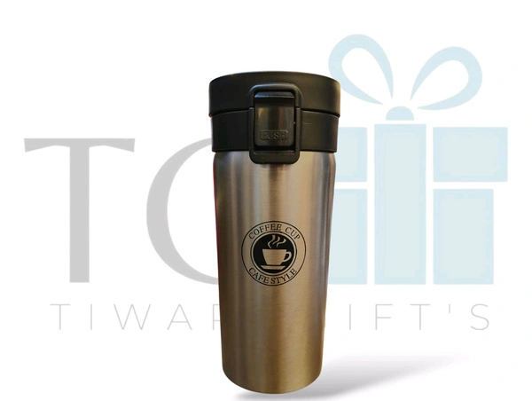 Coffee Mug CHROME COLOUR Double Wall Stainless Steel Tumbler Vacuum Flask Travel Bottle with Leakproof flip Lid Cafe Style Design, Mesh Filter,Keeps Drinks 8 Hrs Hot & 14 Hours Cold for Ideal Gifting.