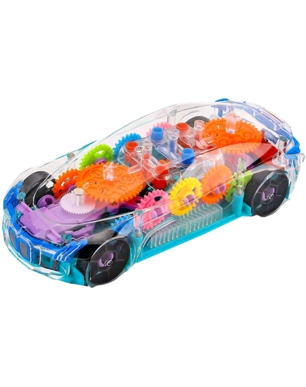 Electric Transparent Concept Racing Car Toy with Flashing LED Lights and Music | 360 Degree Rotation Universal Driving | Mechanical Gear Design |