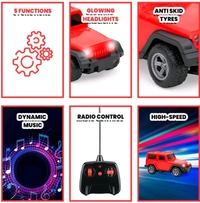 Bring the thrill of adventure to life with this stunning rechargeable remote-controlled toy SUV, expertly designed to resemble the iconic red Mahindra Thar! Perfect for kids and collectors alike, this high-quality toy combines realistic design with easy-to-use remote control functionality, ensuring hours of fun and excitement.