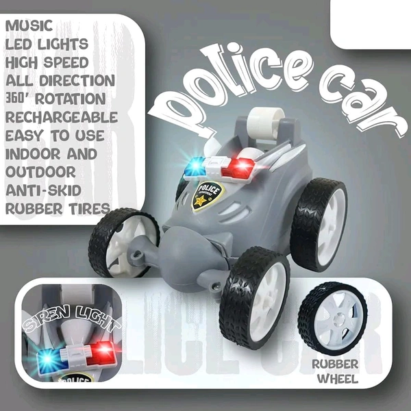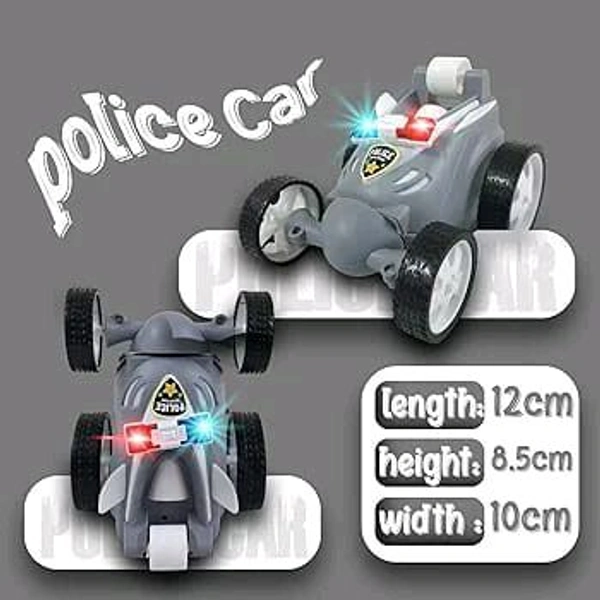 Remote Controled Police Stunt Car Toy, All-Terrain Performance, 360° Rotating Rolling LED Flashing Lights with Police Siren Sound, Anti-Skid Rubber Tires, Grey, C Type RechargeableRemote Controled Police Stunt Car Toy, All-Terrain Performance, 360° Rotating Rolling LED Flashing Light.